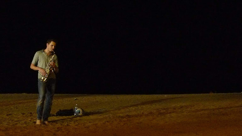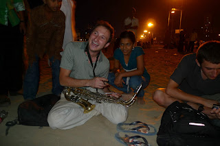 Прве недеље смо увече Ола, Филип, Иван (практикант руског порекла, из Аустралије) и ја ишли на плажу Чопати да се мало опустимо. Понели смо лопту да играмо одбојке, а Филип је понео и свој саксофон да свира. На плажи нам се придружило још неколико других практиканата. Чим смо сели на песак, постали смо атракција. Свако ко је пролазио успоравао је да нас види и евентуално услика, а неки су чак седали близу нас. Када смо почели да играмо одбојку, постали смо још већа атракција и већ се почела правити мала гужва у гледалишту :). Међутим, највећи хаос је настао када је Филип почео да свира саксофон. Већина Индијаца никада није чула за овај инструмент и њихови музички укуси се углавном своде на слушање музике из боливудских филмова (по мом мишљењу, треш музика). Убрзо смо били окружени гомилом људи који су сви гледали у Филипа, који је, чини ми се, уживао да буде у центру пажње. Једна девојчица је чак тражила и аутограм, док је друга девојчица довела родитеље и замолила да га загрли :). Један момак се распитивао која је врста музике и чак је понудио да следећи пут понесе своју гитару да заједно свирају.