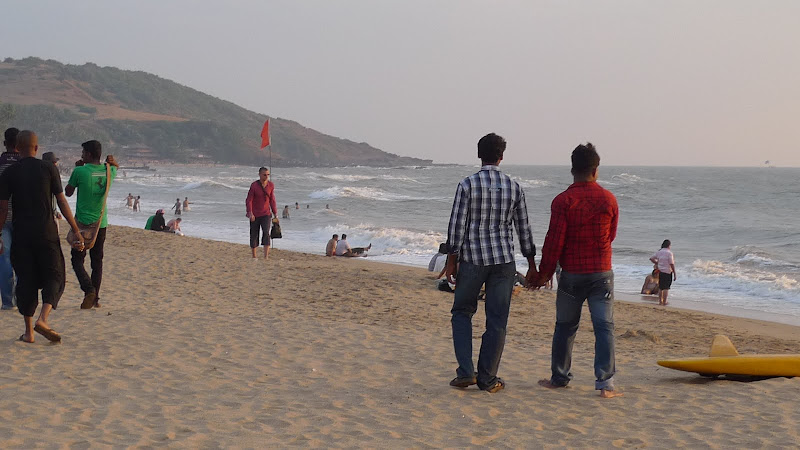 Индијци су веома осетљиви на јавно исказивање нежности и то се строго избегава. Млади парови избегавају да буду виђени сами на улици, а о заједничким путовањима се ни не размишља, осим ако иду у друштву другова. Они мало либералнији се држе за руке када иду улицом, али они су у мањини. Људи овде су веома осетљиви на говоркања и трачеве и зато се сви веома брину шта ће комшије помислити. Не знам шта би се десило када би се странци слободно понашали на улици (љубљење и сличне гадости :)), али, пошто нас је пуно људи упозорило да то не радимо, нисам вољан да сазнам... Девојке и жене су овде веома цењене и веома заштићене. Понекад имам осећај да се момци просто боје физичког контакта девојке, што и не чуди, јер ко год дотакне девојку, а она то протумачи погрешно, тај је обрао зелен бостан и само може да се нада да ће га тући полиција, а не бесна руља. Зато је веома интересантно видети како се у препуном возу сви момци труде да не дотакну Олу :) (али зато немају проблем са дотицањем мене :( ). Не знам да ли је то због овакве ситуације, али много момака се не либи физичког контакта са другим момцима. Често се на улици могу видети добри другари како иду загрљени улицом или држећи се за руке. У почетку ми је било веома смешно, али до сада сам већ навикао на то (чак сам се једном и сликао држећи се за руке са једним Индијцем :)).